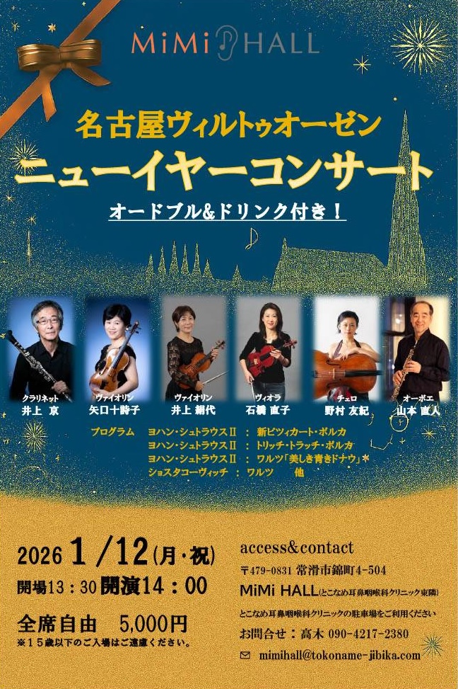 名古屋ヴィルトゥオーゼンは2004年、名古屋フィルハーモニー交響楽団の奏者を中心に結成されました。ウィーン・フィルハーモニー管弦楽団のトップ奏者で結成されたアンサンブル「ウィーン・ヴィルトゥオーゼン」より名前を貰い、様々な編成の室内楽に取り組んでいます。このHPでは名古屋ヴィルトゥオーゼンの活動情報を中心にお届けします。
